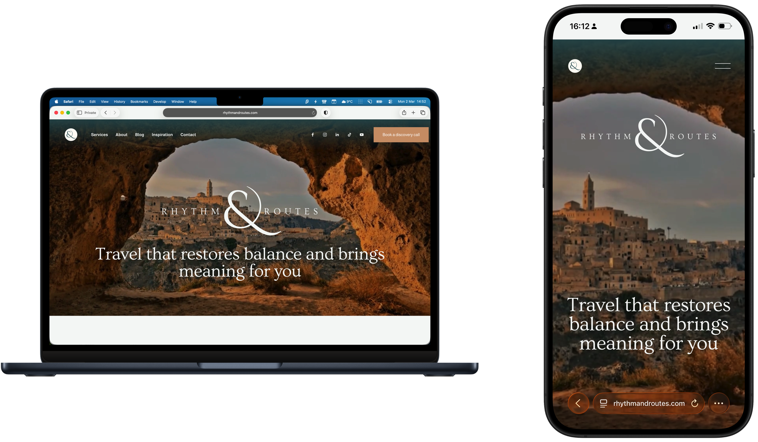 Lizzie and Colin came to us as first-time website owners, knowing what they wanted their business to feel like but not quite sure how to get there online. As a wellness travel company, the brand, tone, and visual identity needed to feel as considered and intentional as the experiences they offer their clients.